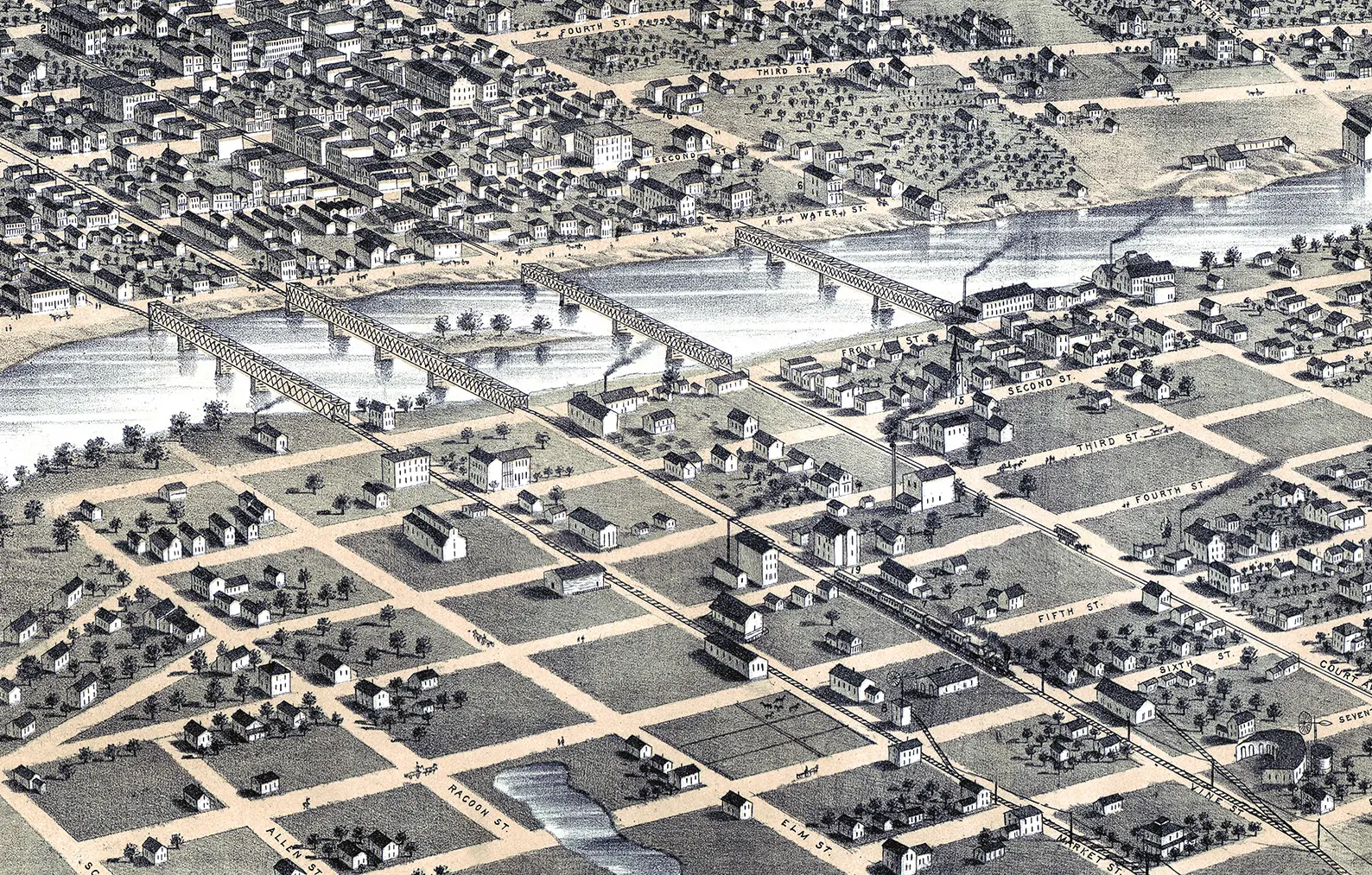 Historic bird’s eye view of Ann Arbor, Michigan from 1880
