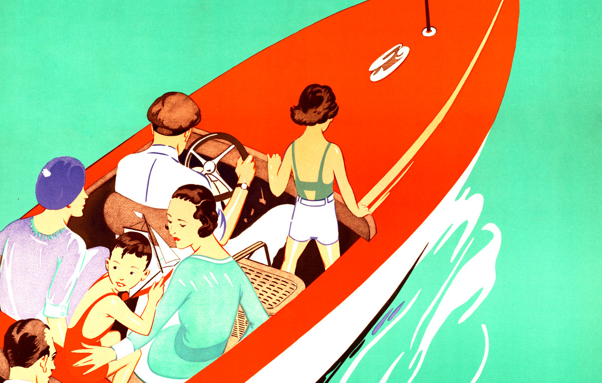 "Lake Winnipesaukee Sunday" was one of a series of travel posters created to entice visitors to travel throughout New England on the Boston and…