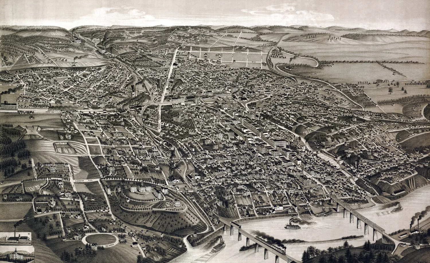 Historic bird's eye view of Chattanooga, Tennessee from 1886