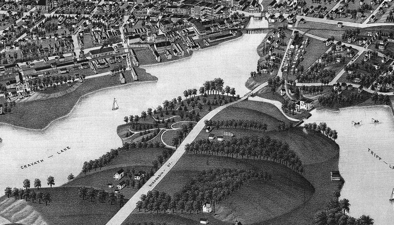 Bird's eye view of Whitewater, Wisconsin in 1885