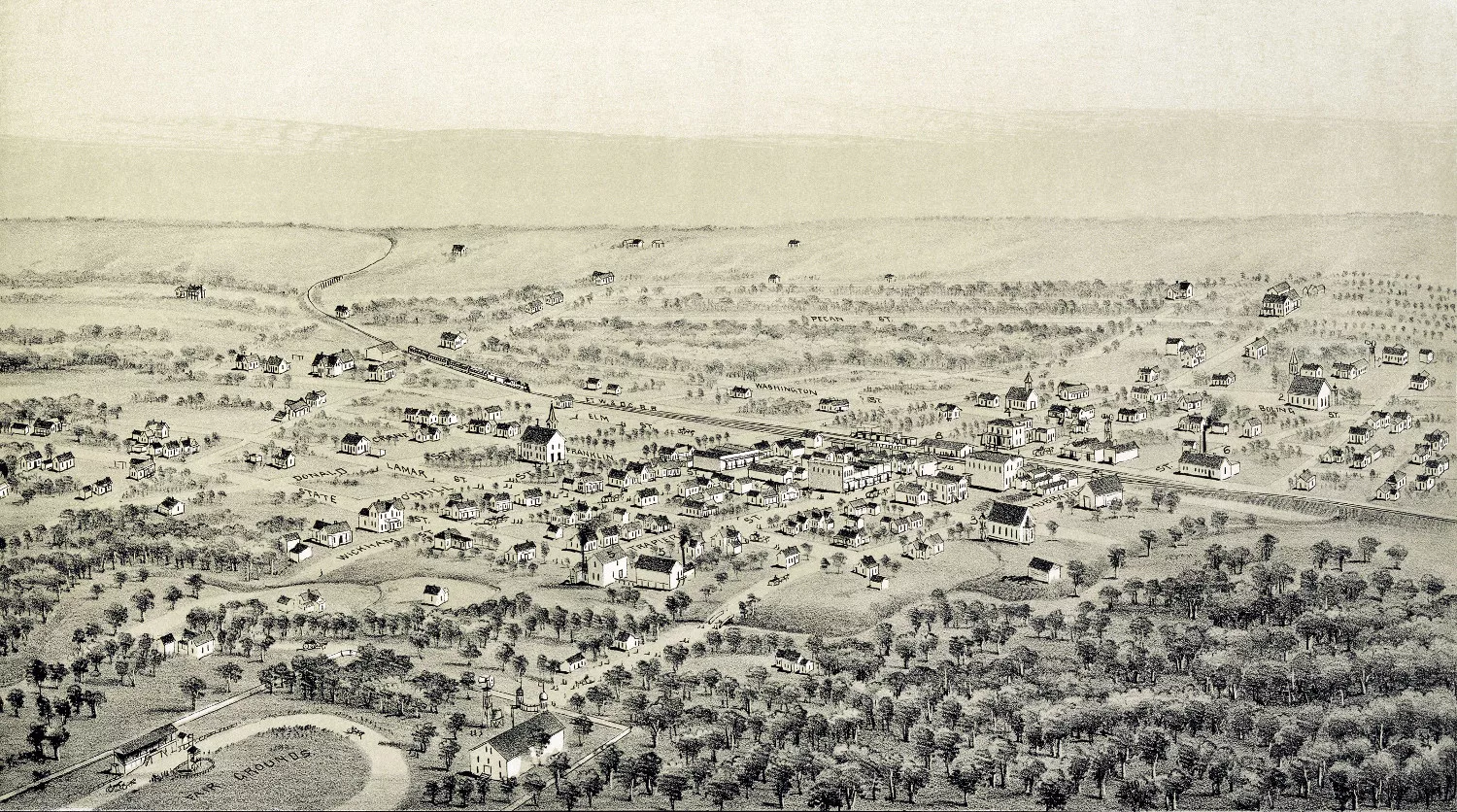 Historic old map shows bird’s eye view of Brenham, Texas in 1881