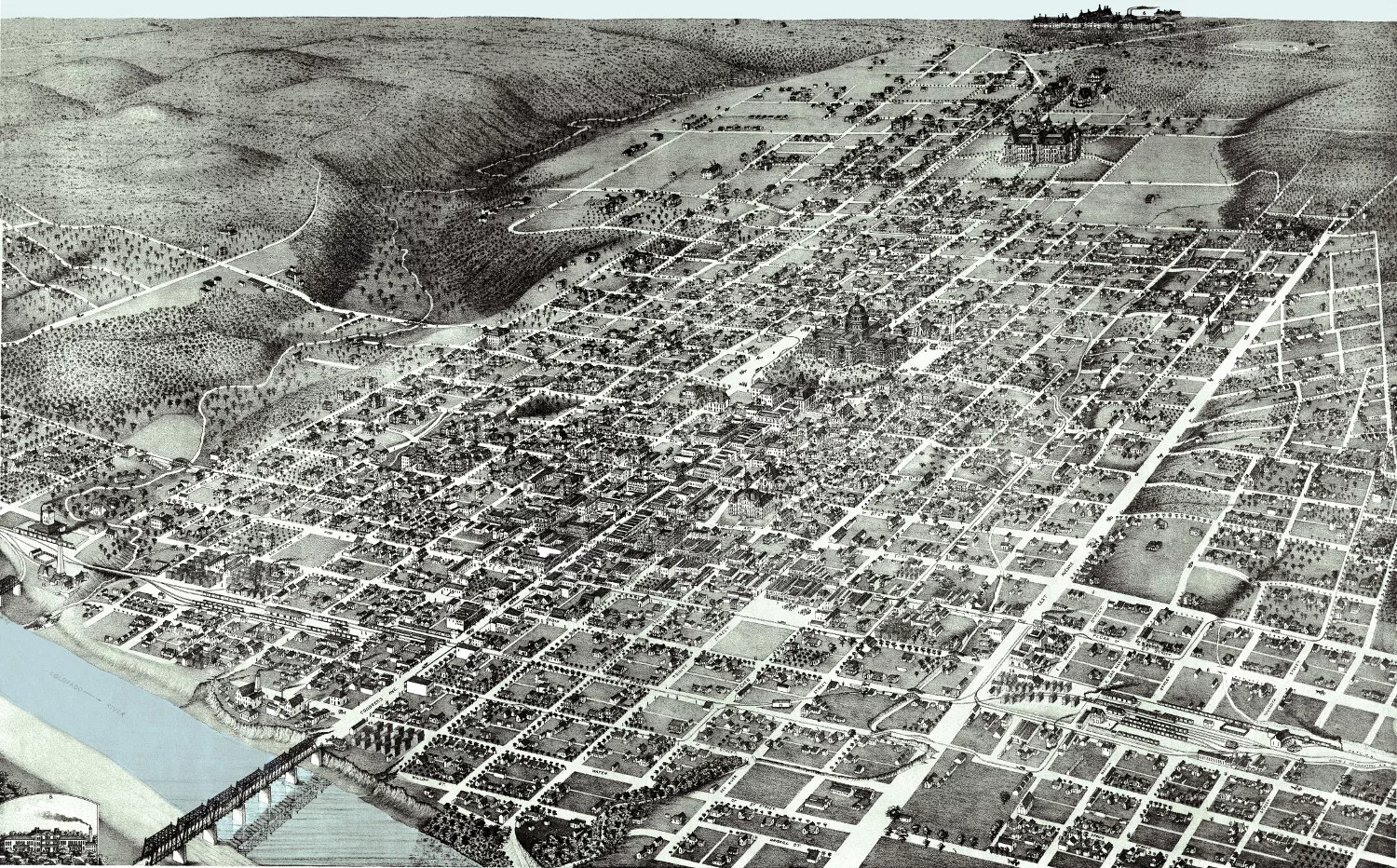 Historic Bird’s Eye View of Austin, Texas in 1887