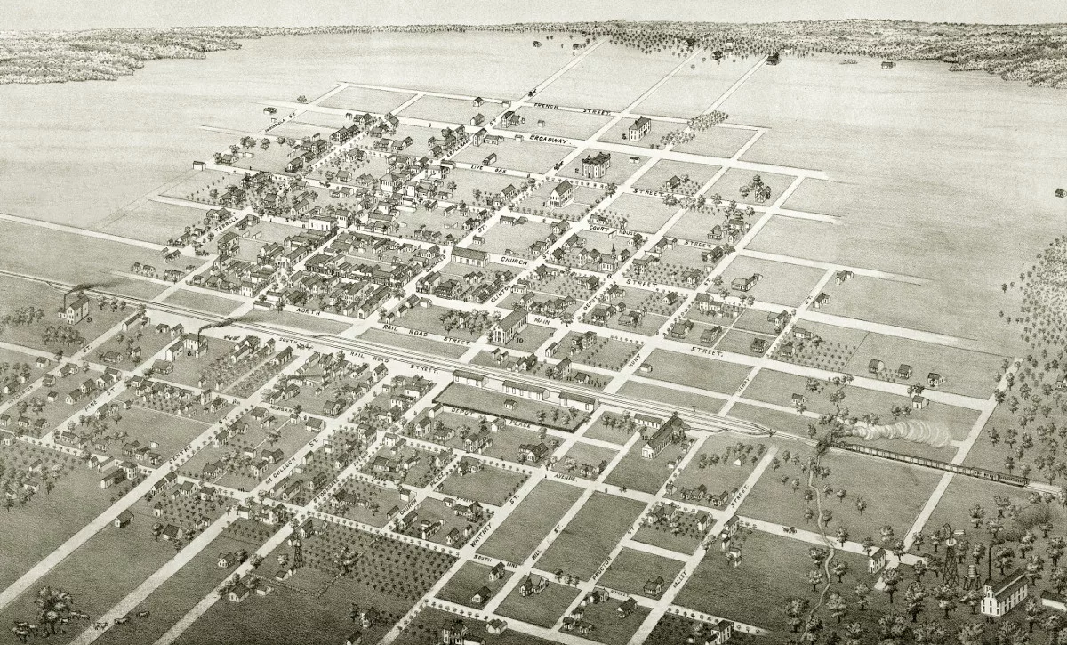 Historic old map shows bird’s eye view of Brenham, Texas in 1881